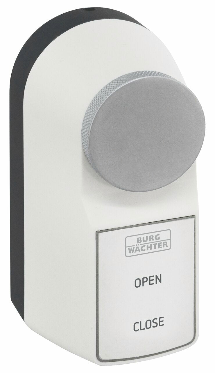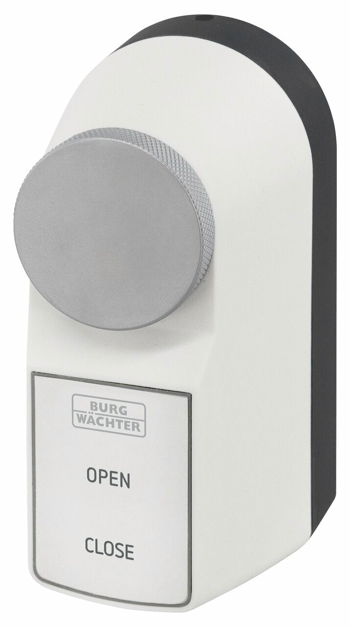 Erleben Sie höchste Sicherheit und Komfort mit dem secuENTRY active 7700, dem smarten Motorschloss, das durch seine Vielseitigkeit und einfache Montage überzeugt. Steuern und programmieren Sie Ihr Schloss einfach per Smartphone mit der kostenfreien BURGsmart App. Nutzen Sie Zeitprofile und Kalenderfunktionen, ideal für Kurzzeitvermietungen, Pflegedienste oder Reinigungsdienste.Das Schloss ist für alle Türstärken und Euro-Profilzylinder (bis 35 mm überstehend) mit Not- und Gefahrenfunktion geeignet. Für weitere Zylindertypen ist das secuENTRY Montagekit 7771 optional erhältlich. Das Motorschloss kann durch Klemmen, Kleben oder Schrauben an Ihrer Tür befestigt werden.Der besonders kraftvolle Motor mit energieoptimierter Soft-Stop-Funktion sorgt für einen reibungslosen Betrieb. Der hochwertig verchromte Metalldrehknauf ermöglicht ein mechanisches Notöffnen, während das Öffnen und Schließen bequem per Tastendruck erfolgt.Das secuENTRY active 7700 bietet eine smarte Lösung für Ihre Türsicherung, die einfach zu installieren und intuitiv zu bedienen ist.
